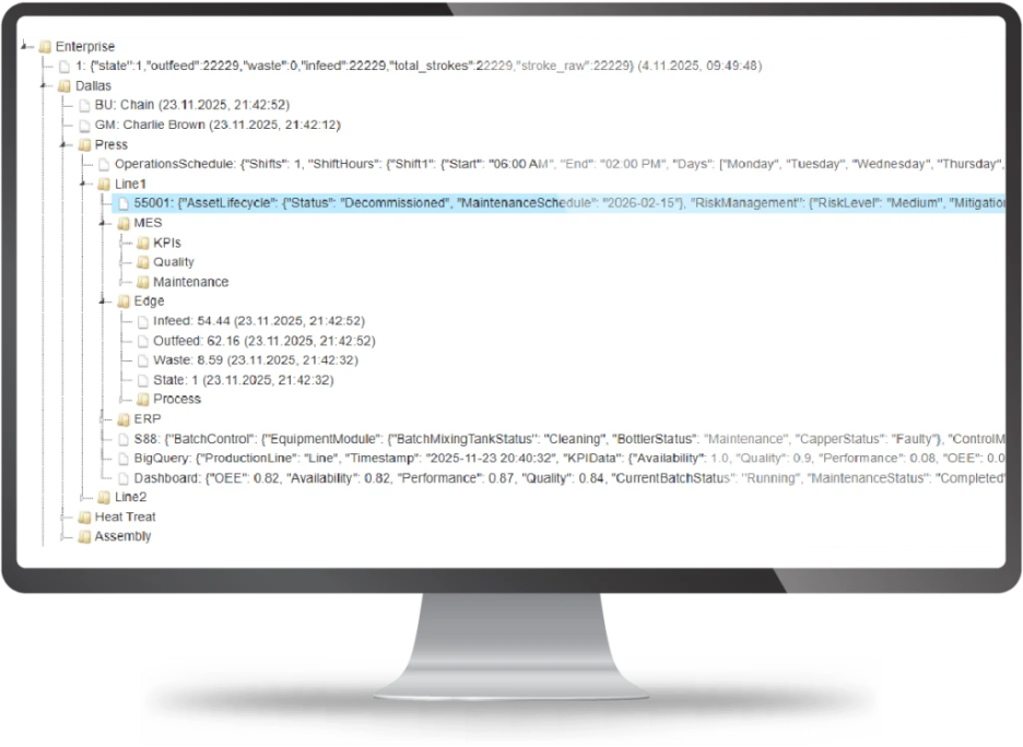 Autre avantage clé : la capacité à évoluer de l’edge au cloud. Le Unified Namespace permet de déployer une architecture cohérente, depuis une ligne de production jusqu’à des environnements multi-sites. Il rapproche également les données d’ingénierie et les données opérationnelles, facilitant la collaboration sur l’ensemble du cycle de vie des actifs industriels.